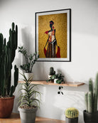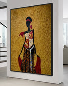 Her garments became a dance of pattern and color. Each shape and stitch inspired by African textiles Iâve studied over timeâbold, rhythmic, rooted. I chose deep reds and rich ochres because they reminded me of ceremonial cloth, worn not for show, but for honor. Her corset, stitched together with contrasts of gold, white, and crimson, became its own kind of armorâone made not of metal, but of identity.