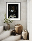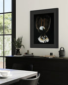 Back in my studio, I could still feel that mountain air and see the way the light kissed each feather. I started with a black canvas, because I wanted the eagle to rise out of shadow—just like it did in real life. I layered rich earth tones across its wings, working slowly, adding detail until each feather felt alive. The head was the most delicate part—getting the eyes right was everything. I wanted you to feel that same fierce intelligence and quiet dominance I felt when I first locked eyes with it.
